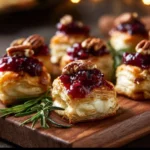 Keywords: Baked Cranberry Brie Bites, appetizers, holiday snacks, cheese bites, party food