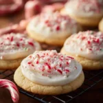 - For frosting, mix powdered sugar with a little half and half and peppermint extract until desired consistency is reached. Frost cookies and sprinkle with more crushed candy canes if desired.