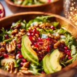 A vibrant and flavorful salad featuring pomegranates, avocados, and a sweet-tangy honey mustard dressing, perfect for holiday gatherings.